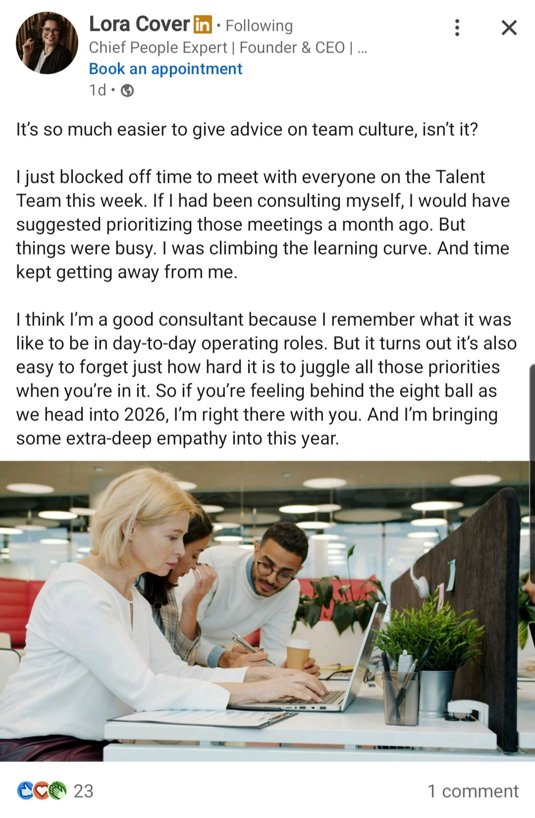 HR is You Tube now. Which you would think saves us a big chunk of money, but no. We are still paying the contract of an HR consultant who fancies herself an HR Influencer. I like this post where she pretty much tells me, a Cleveland taxpayer, that she has been doing a poor job. How inspiring is this? The average income of of a Cleveland household is around $38,000, and this is how Dr. Morgan and our appointed school board think we should be spending tax money?
