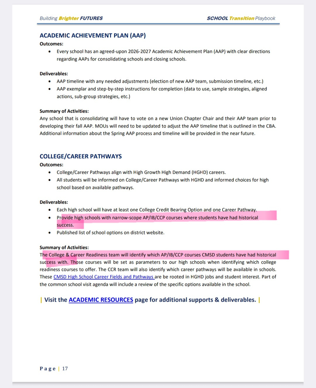 When the School Choice Portal opened, the big focus was on all of the CTE pathways (and the killing off of the popular horticulture pathway at East Tech) so I went looking for high school information and all of the increased AP offerings. Since John Adams had played a big role in the emotions of Building Brighter Futures messaging, I started looking there. I couldn’t really find anything. I thought I might ask some high school teachers to see what they had been told. Still waiting to hear back. But I did get my official copy of The Playbook and guess what I found?